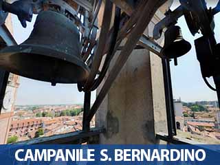 La chiesa di San Bernardino, inserita tra altri edifici, ha muri perimetrali in laterizio a mattoni pieni, la facciata intonacata e arricchita con modanature, portali, nicchie con statue e bassorilievi. Il campanile è in mattoni pieni intonacati con balaustrata in pietra nella cella campanaria. La copertura con capriate in legno e travi poggianti sulla murature è a tetto a capanna sopra la navata e a padiglione nel presbiterio e sacrestia; le cappelle laterali hanno una falda a leggio.